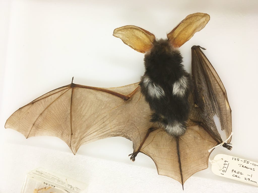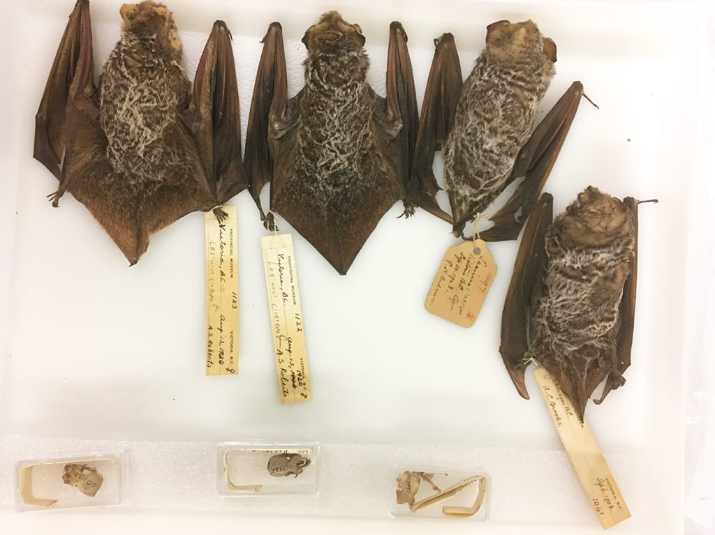 My husband, who works at the local museum, took these shots of some of the bats in their collection. Top is a spotted bat with one of its fantastic wings out, and the bottom is a group of hoary bats (they look so delightfully furry). Animals in museum collections are fascinating and creepy at the same time.