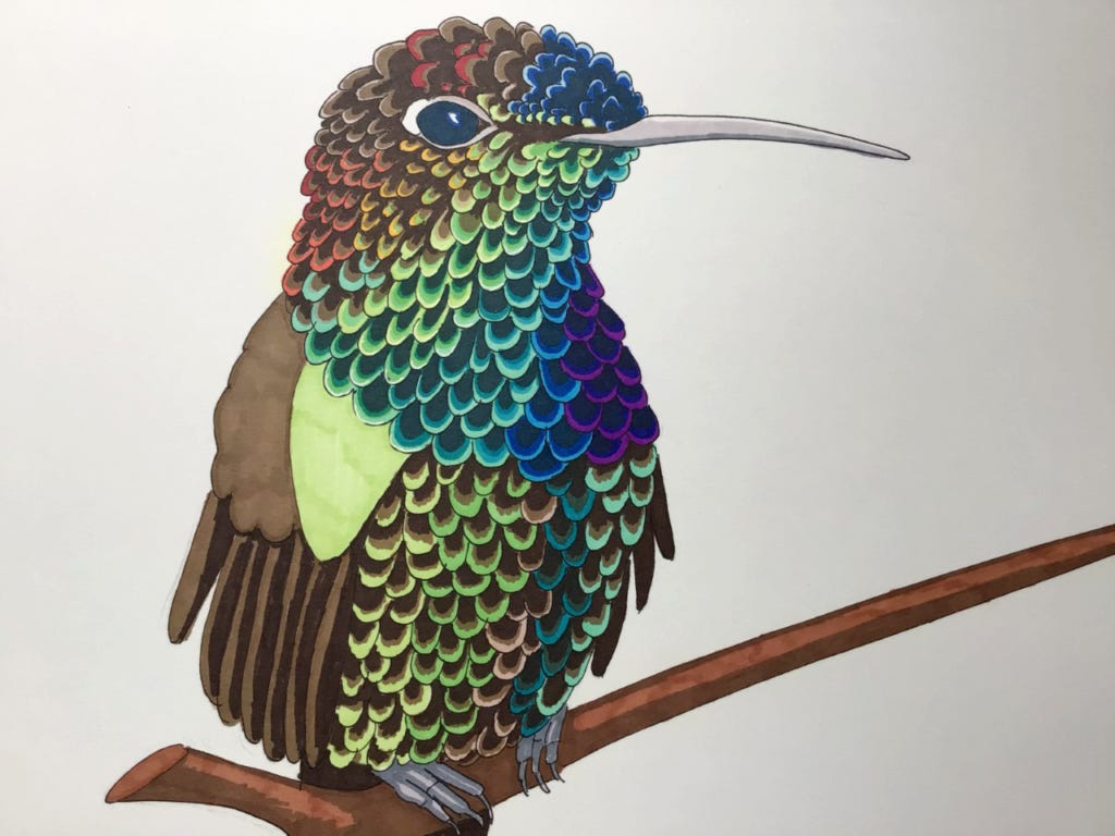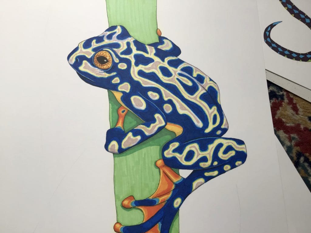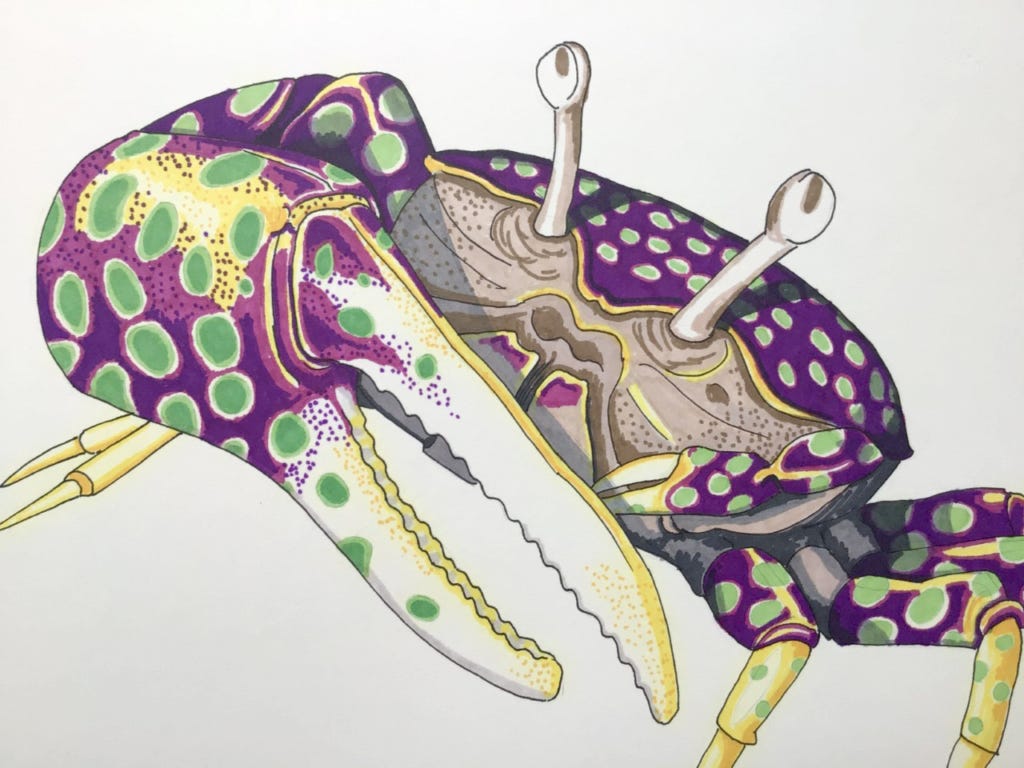 I finally got around to clearing out an old filing cabinet last weekend. Amongst the shocking amount of scientific papers I've hoarded over the years, I found a cache of drawings--or are the illustrations? I don't know where the dividing line is. I did them a few years ago with felt pens on paper. Just looking at them makes me want to pull out the pens and draw some more. I have a graphic novel idea that's been percolating in the back of my mind that might need some sketches...
