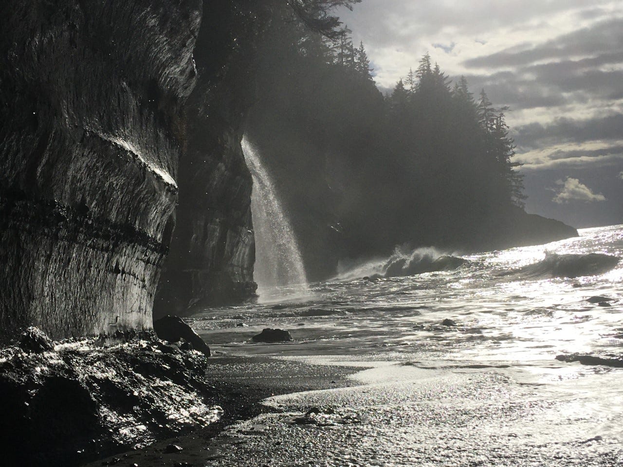 Later, I marched along a beach with awesome waves and a waterfall. It’s called Mystic Beach and I’d been hoping to make it there for years. It wasn’t a overly hard hike in and there was a delightful suspension bridge made of a very-see-through metal grill —clearly meant to weed out those afraid of heights (but I made it over).