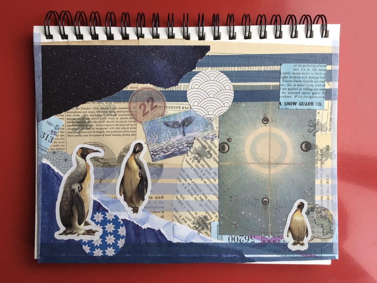 I’ve taken the week off to spend time with my daughter and work on my various writing projects. I’ve also gone on a collage making binge, example up above (this time with penguins!).