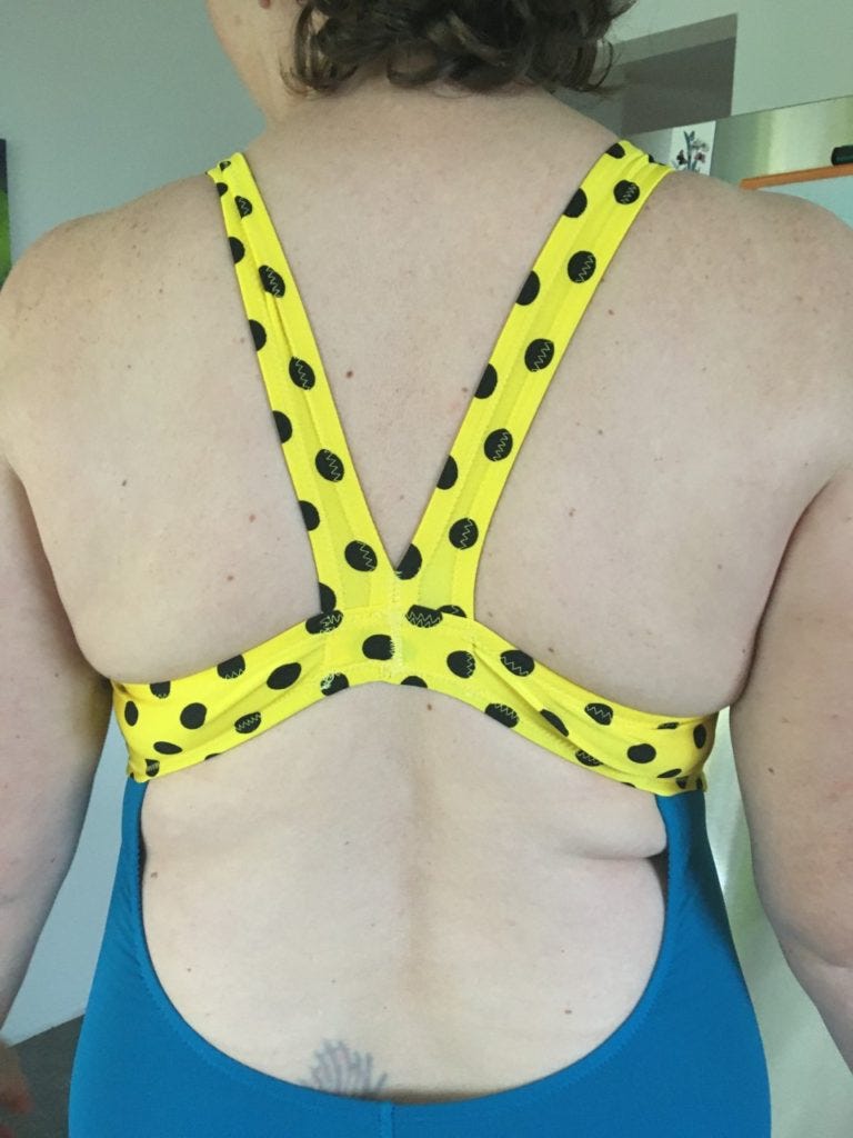 This is my first one, usually the first item of clothing based on a new pattern I make doesn't fit, so I always plan on making at least 2. I was pleasantly surprised that the first version fit. I wanted to swim some laps, and I'm now ready to do so.